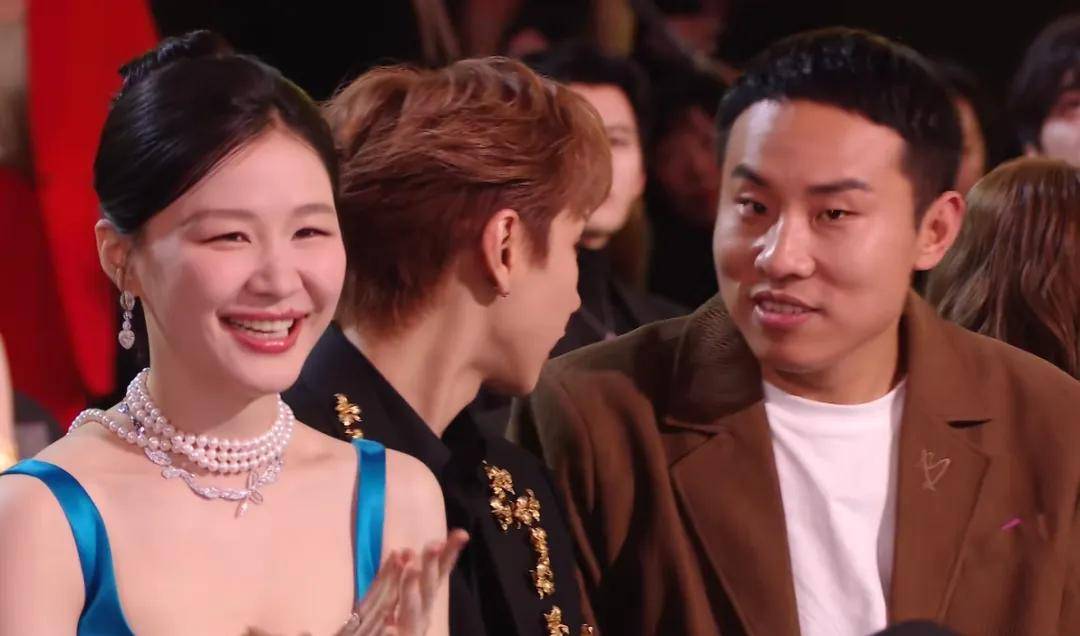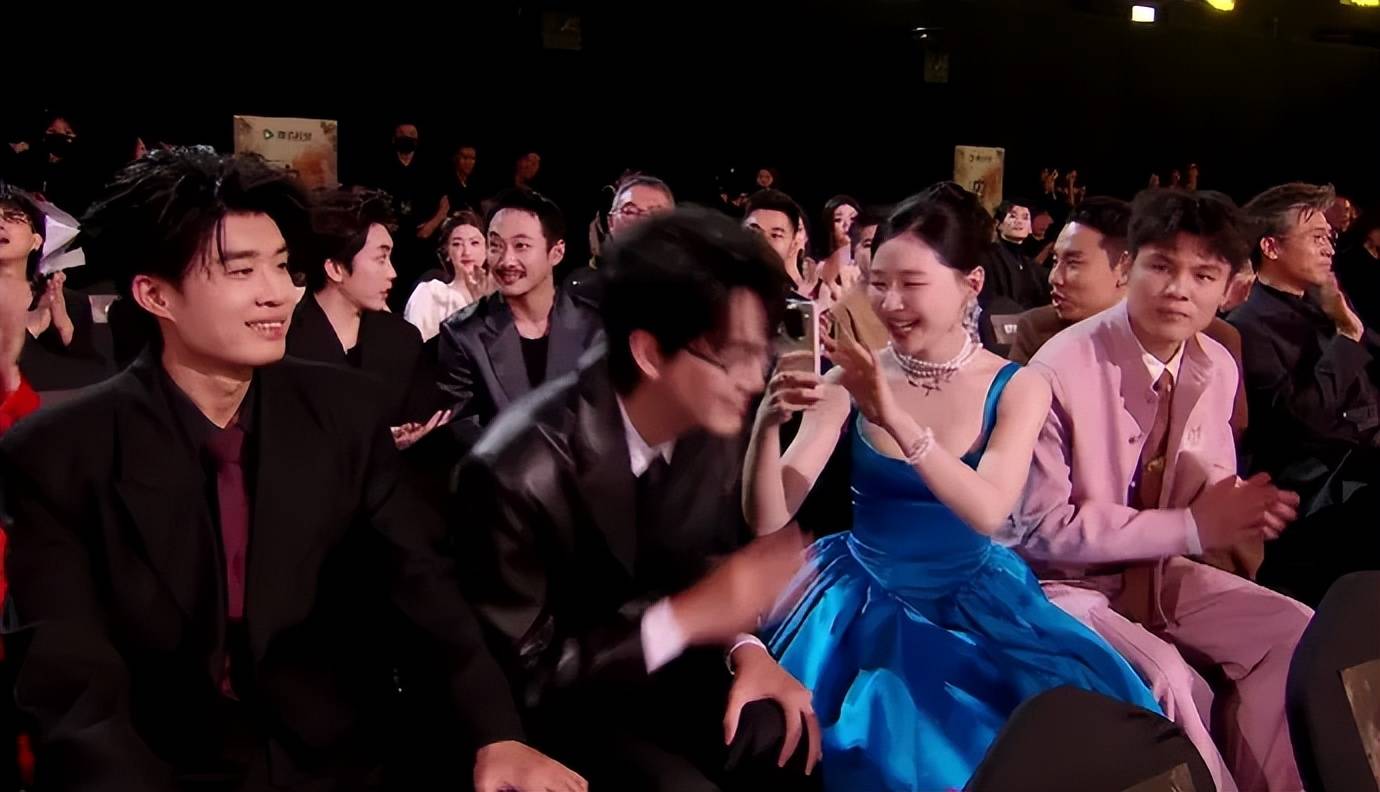本来星光大赏就很像开年会,何广智、张呈、雷淞然获奖之后,金靖和徐志胜直接掏出手机拍照,脸上全是对熟人获奖的兴奋,后面徐志胜和金靖还串座去了汪苏泷旁边,真有公司年会那味儿了!