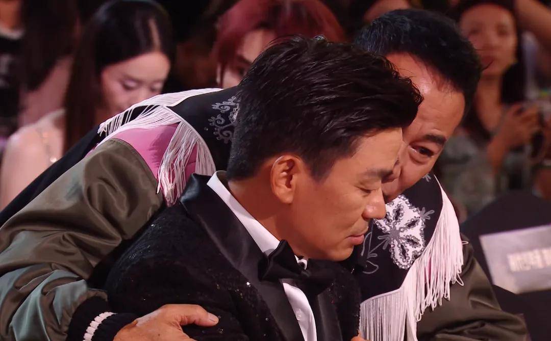 任达华也没少社交,还跑去和王宝强说话,华哥真是热情好大哥,一点架子都没有。
